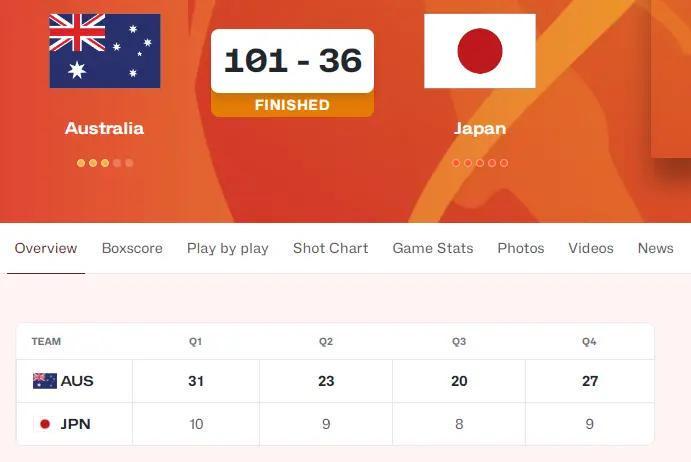 另一场比赛,澳大利亚男篮更加残暴,面对日本队,狂胜65分!